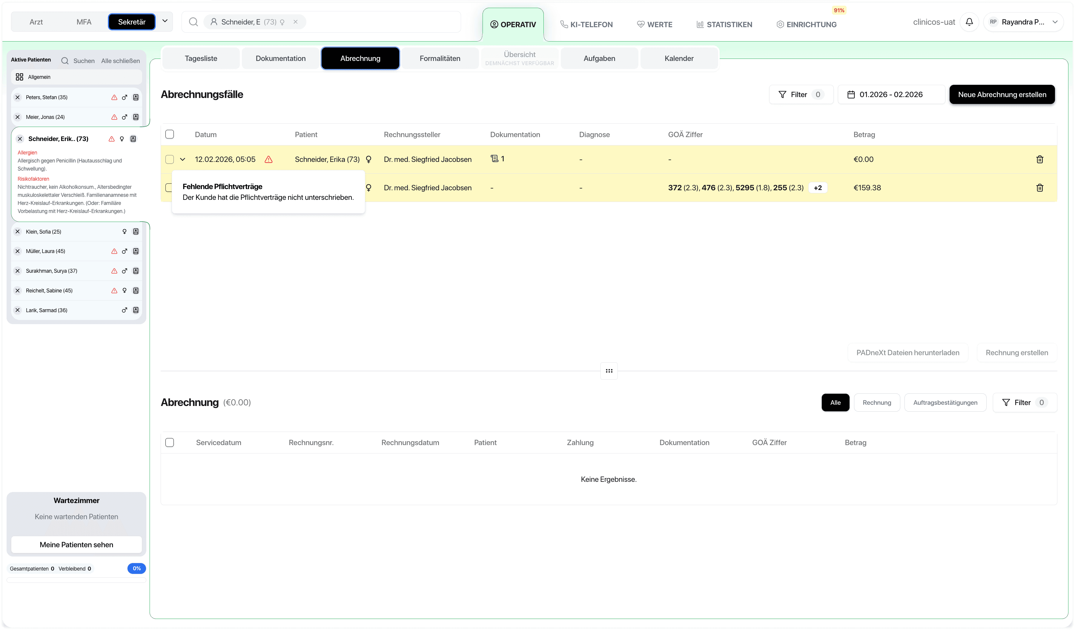 Abrechnung ist häufig ein Medienbruch: unterschiedliche Regelwerke, manuelle Rechnungsprozesse, separater Export für die Buchhaltung und Rückfragen, wenn Belege oder Buchungen fehlen. Besonders bei gemischten Leistungen (z. B. GOÄ + MwSt.) steigt der Aufwand und das Fehlerrisiko.